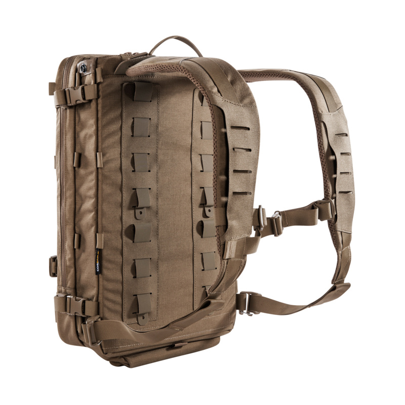 Der TT Breacher Pack kann als Rucksack über Schutzwesten getragen oder mit dem mitgelieferten Adaptersystem auf Schutzwesten aufgeschlauft werden.