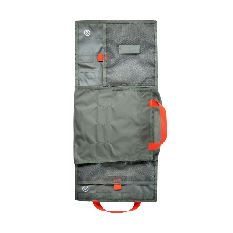 Der TT First Responder 50 IRR bietet durch herausnehmbare Taschen, ein ausklettbares Panel und diverse Elastikschlaufen die Möglichkeit, umfassendes Erste-Hilfe-Material individuell zu organisieren. Er eignet sich insbesondere zur griffbereiten Unterbringung in Fahrzeugen.