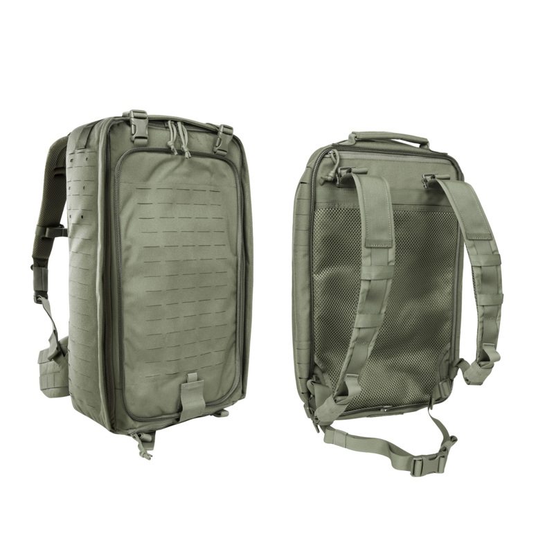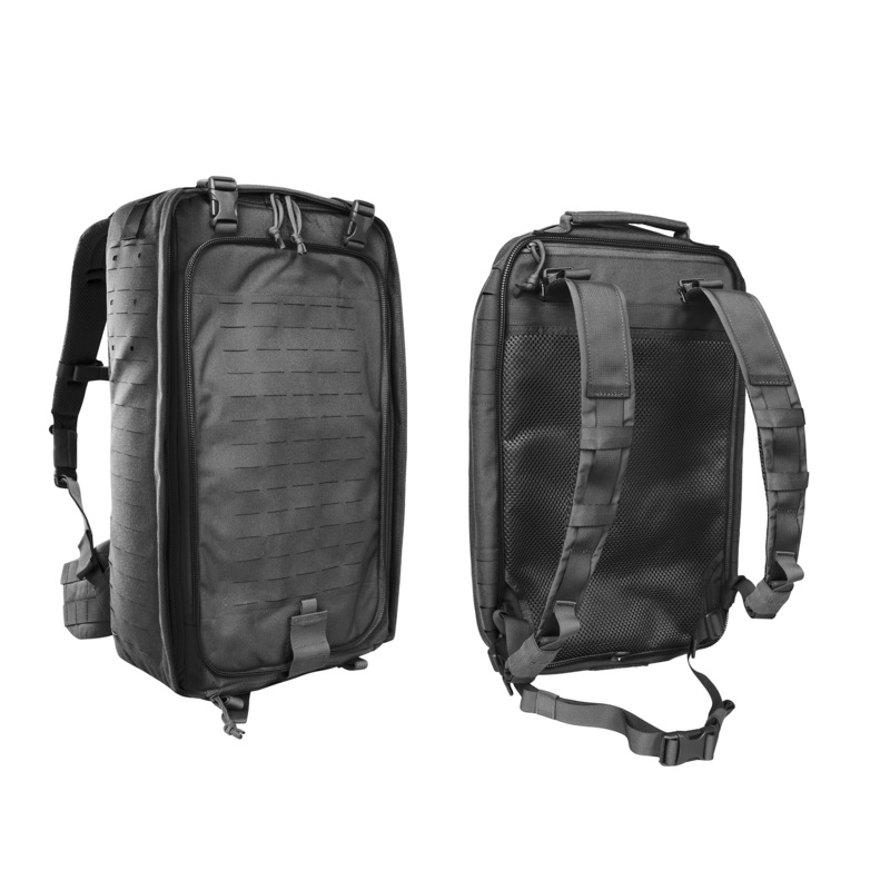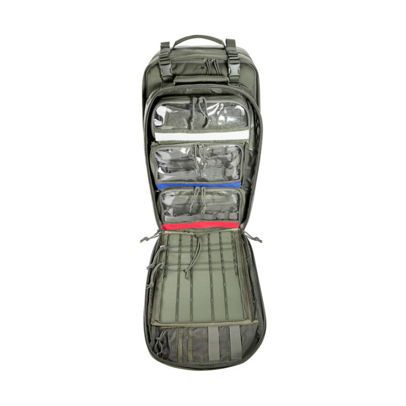 Schlanker Medic Pack mit abnehmbarem Frontrucksack und funktionaler Innenaufteilung.