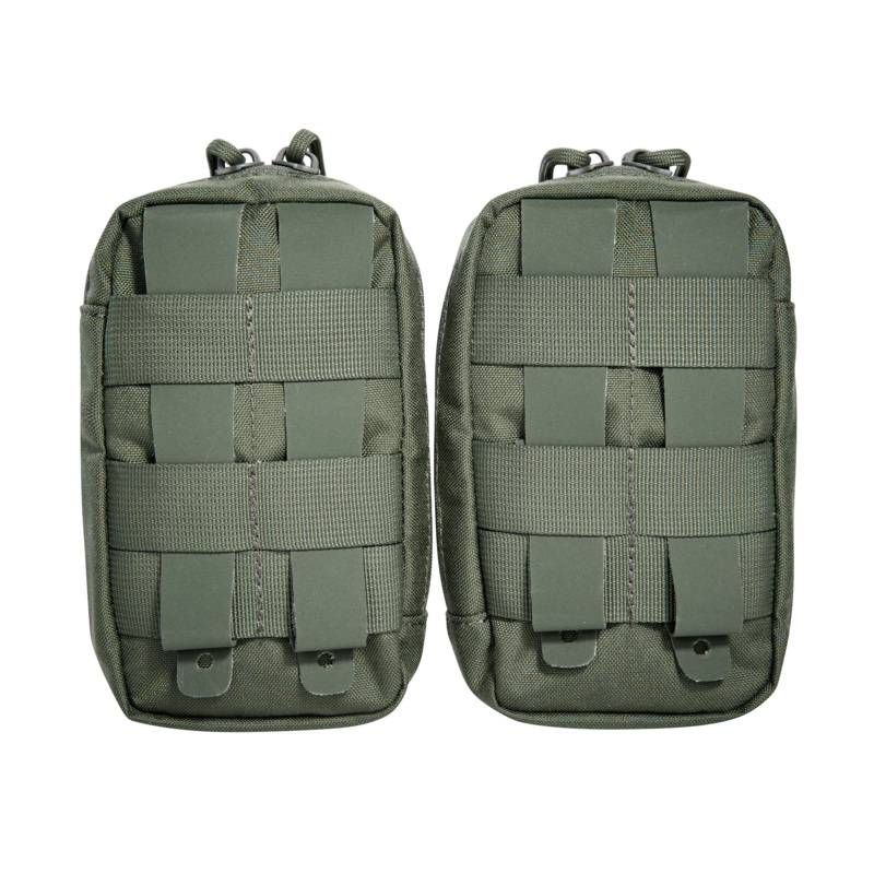 - 2 kleine Reißverschluss-Mehrzwecktaschen, aufgeschlauft auf den zwei äußeren Magazintaschen