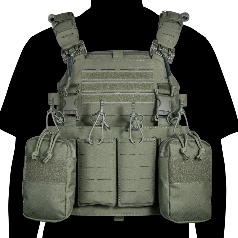 Es ist mit MOLLE in Lasercut-Ausführung ausgestattet und kann mit dem TT Modular Chest Rig Pack kombiniert werden. Es kann auch an Plattenträgern befestigt werden. Abklettbare Schulterpolster werden mitgeliefert.