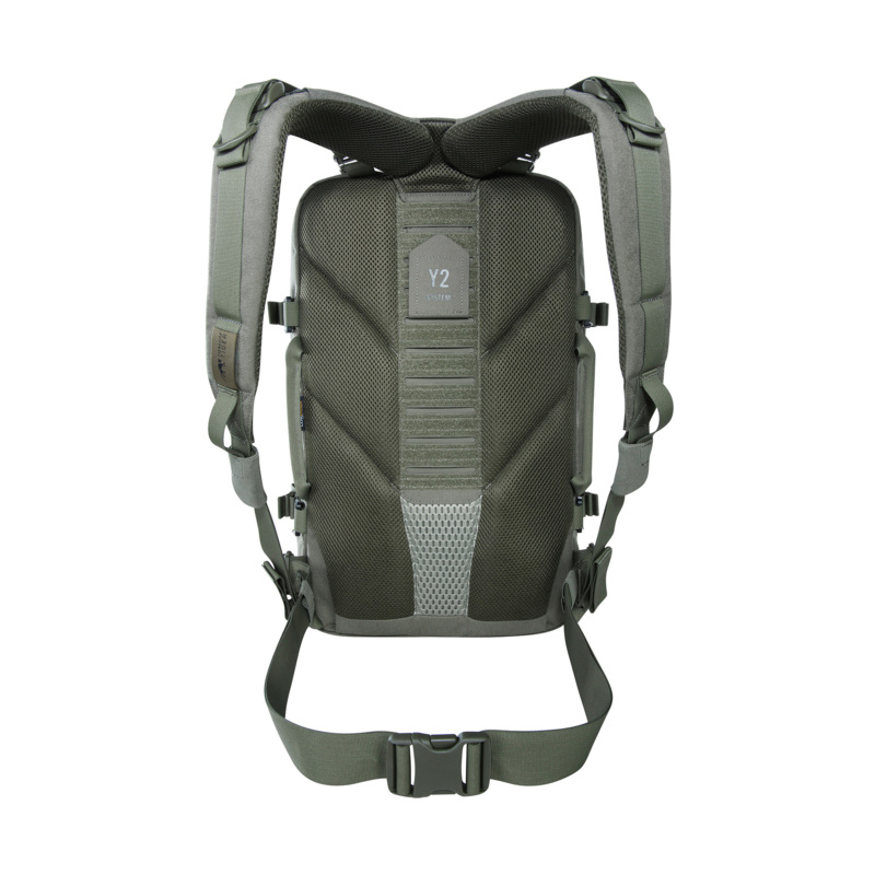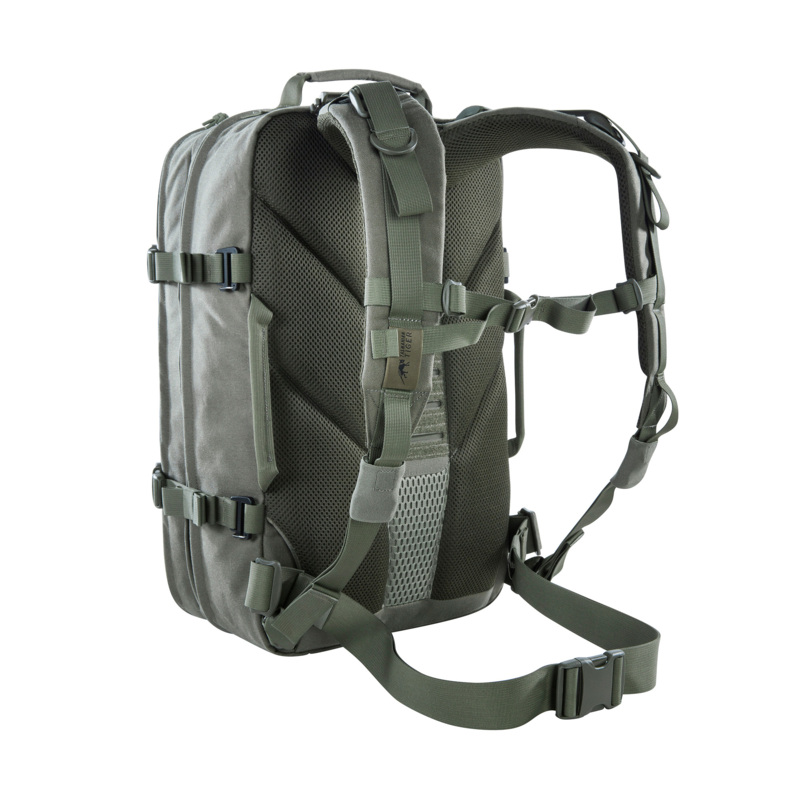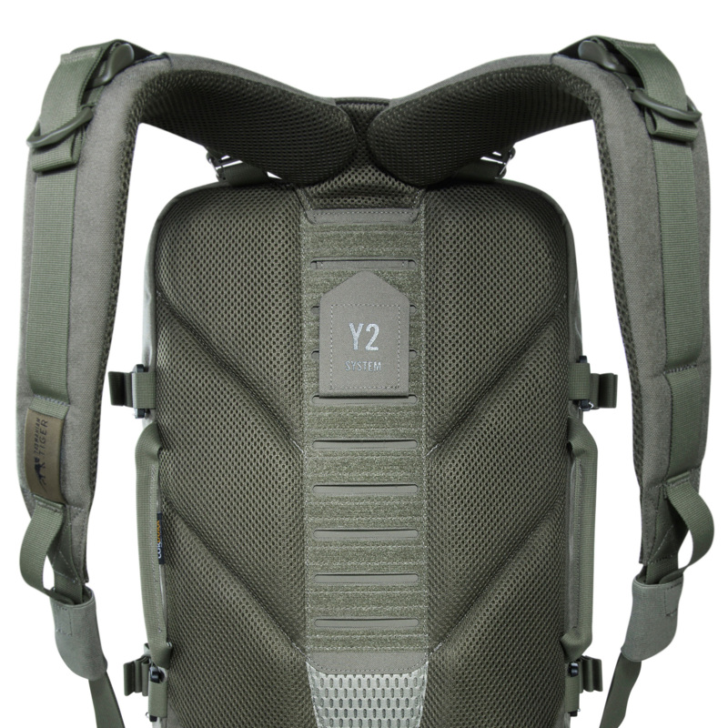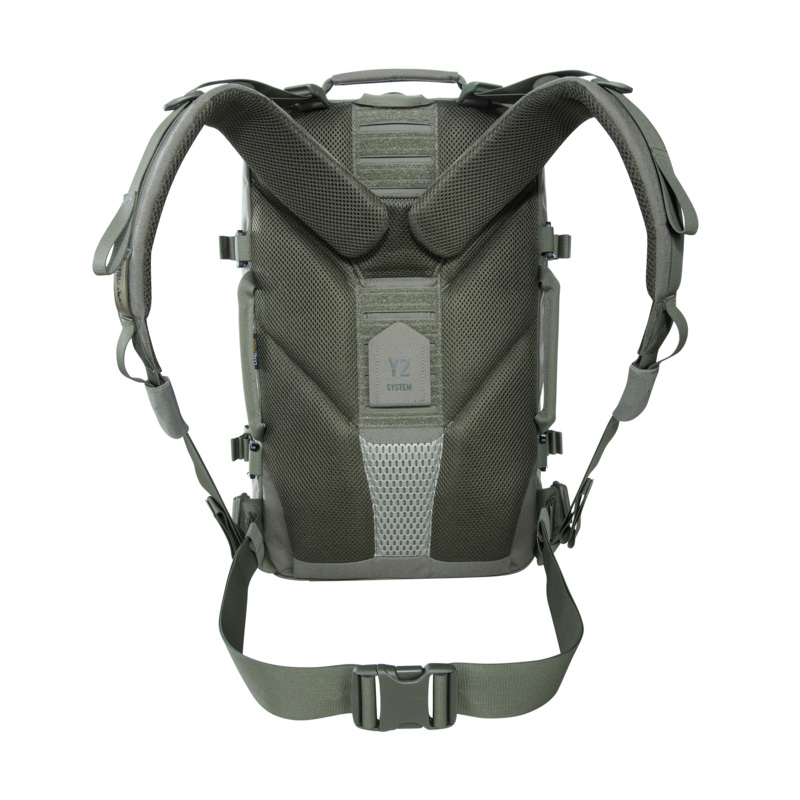 Der Rucksack verfügt über ein gepolstertes, auf die eigene Rückenlänge einstellbares Tragesystem, Schulterträger und Bauchgurt lassen sich abnehmen, zum Beispiel, wenn der Rucksack in Fahrzeugen verstaut wird.