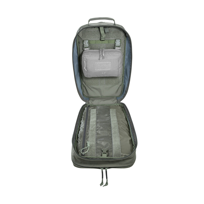 Der TT Modular Grab Pack 30 IRR bietet 30 Liter Volumen und zwei große, komplett zu öffnende Fächer. Das vordere Fach ist mit 4 eingekletteten Reißverschlusstaschen verschiedener Größe ausgestattet, im Deckel befinden sich flache Organizer-Taschen. Die Rückwand des hinteren Fachs ist mit einer großen Klettfläche sowie zwei MOLLE-Streifen zur individuellen Bestückung versehen. In den flachen Fronttaschen können z.B. Dokumente verstaut werden.