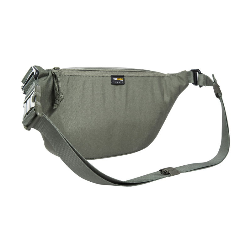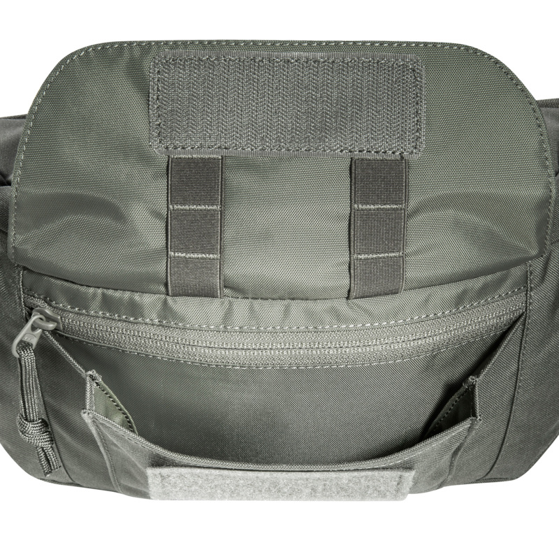 Die TT Modular Hip Bag 2 IRR besitzt ein mit MOLLE-Klett versehenes Hauptfach, eine Fronttasche und ein zusätzliches Reißverschlussfach auf der Rückseite. Auf dem Deckel befindet sich eine MOLLE-Leiste in Lasercut-Ausführung. Der Gürtel ist mit einer Sicherheitschnalle gegen ungewolltes Öffnen versehen, und er lässt sich abnehmen, um die Tasche mit vorbereiteten Haken an einem Ausrüstungsgürtel einzuhängen.