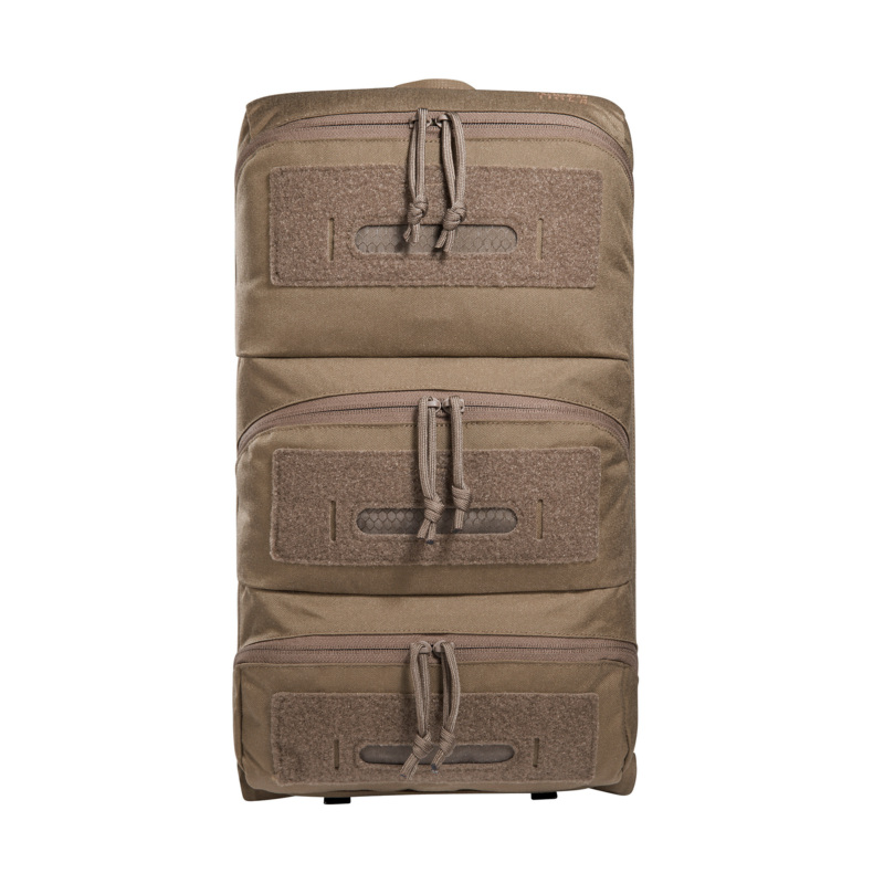 Der TT Modular Combat Pack 18 bietet drei Fronttaschen mit unterschiedlicher Innenaufteilung für den Schnellzugriff auf Materialien. Sie sind zur Kennzeichnung mit Klettstreifen inklusive Knicklichteinschub versehen. An den Seiten befinden sich je zwei Befestigungen für Tourniquets. Der Rucksack besitzt einen komplett umlaufenden Reißverschluss und klappt zur Seite auf. Die kompakte Form im geöffneten Zustand ermöglicht einen übersichtlichen Zugriff auf die Materialien und deren rasche Entnahme. Das Hauptfach ist mit zwei herausnehmbaren Panels aus leichtem, stabilem Tegris®-Material ausgestattet, die individuell bestückt werden können. Zudem verfügt es über herausnehmbare Klarsichttaschen mit Klettstreifen und Knicklichteinschub zur farblichen Markierung, eine herausnehmbare Infusionsbeuteltasche und eine markierte Einstecktasche für Patientenkarten. Am Boden des Rucksacks befindet sich ein Kompressionssack für ein Bergetuch. Zwei robuste Griffe an den Seiten dienen dem Verwundetentransport aus der Gefahrenzone.