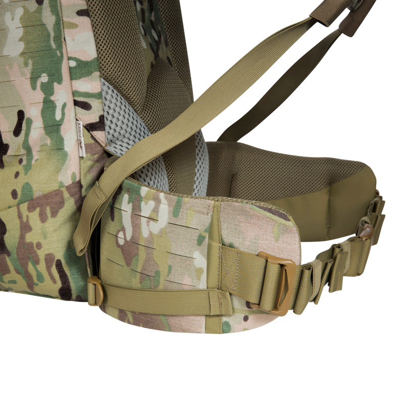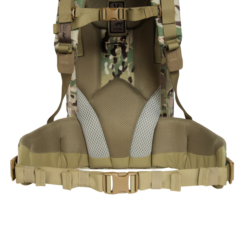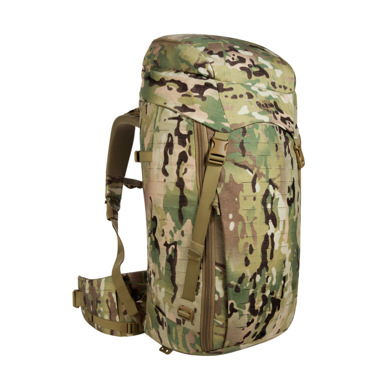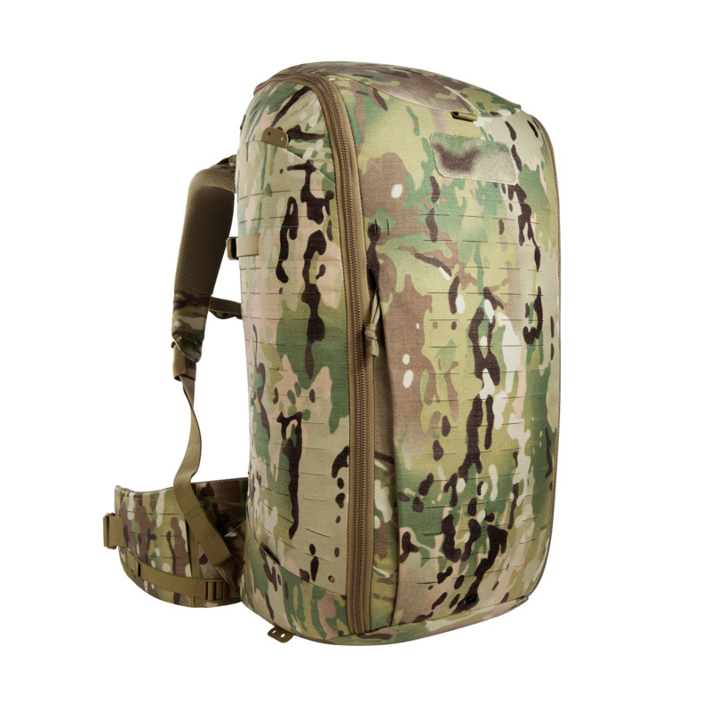 Die Frontöffnung dieses Einsatzrucksacks lässt sich komplett aufziehen, der Deckel ist in der Höhe verstell- sowie abnehmbar. Der Rucksack besitzt eine Deckeltasche und ist an den Seiten und auf der Front mit MOLLE in Lasercut-Ausführung versehen. Zudem verfügt er über eine abnehmbare Falttasche auf der Front. Die Innenseiten sind zur individuellen Ausstattung mit Klettflächen versehen. Der abnehmbare Hüftgurt kann auch separat als Warrior Belt verwendet werden. Auslieferung mit drei eingekletteten Zubehörtaschen und einer eingekletteten Waffenhalterung. Ausgestattet ist der TT Modular Pack 45 Plus MC mit dem leistungsstarken V2 Plus-Tragesystem.