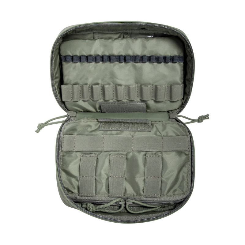 Die TT Rescue Pouch eignet sich für den sicheren Transport von medizinischen Ampullen über ein Schlaufensystem und bietet Organisationsmöglichkeiten für weitere medizinische Ausrüstung. Auf der Front befindet sich ein Klarsichtfach, z.B. für die Inhaltsliste. Die Rückseite ist zum Einkletten in Rucksäcke mit Hakenklett versehen (Abdeck-Klett vorhanden).