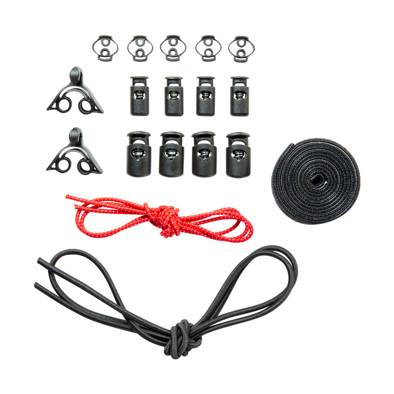 Das TT SRPP Panel mit den Maßen 23 x 13 cm besteht aus leichtem und stabilem Tegris®-Material (SRPP steht für Self-Reinforced Polypropylene). Das gelaserte Loch- und Schlitzmuster ermöglicht individuelle Befestigungsmöglichkeiten mit Bungee-Cord und Klettband (1 x 1 m Bungee-Cord schwarz (3,5 mm), 1 x 1 m Bungee-Cord rot (2,5 mm), 2 Squeeze Hooks, 13 Kordelstopper, 1 x 0,9 m Klettband im Lieferumfang enthalten).