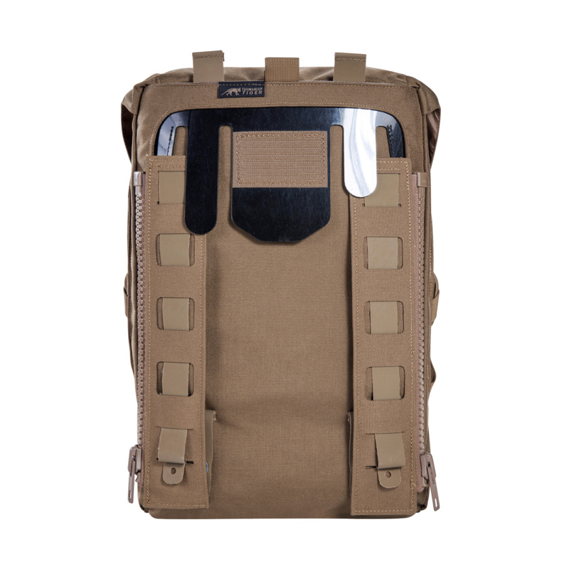 Einfacher Ausrüstungs-Rucksack aus der ZP-Serie von Tasmanian Tiger. Konzipiert für den TT Plate Carrier QR LC ZP, Befestigung über seitliche Reißverschlüsse.