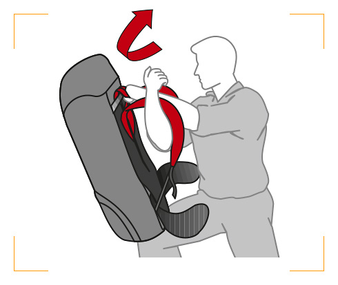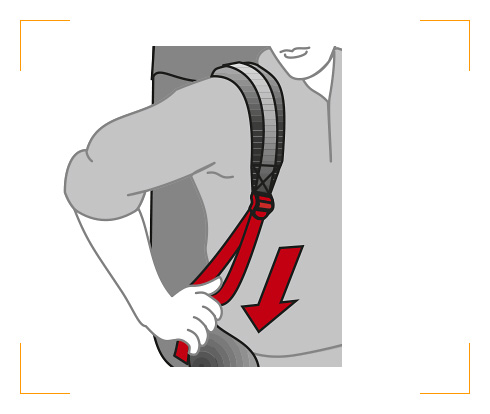 Nach erfolgter Rückenlängen-Einstellung die Schultergurte mäßig anziehen.