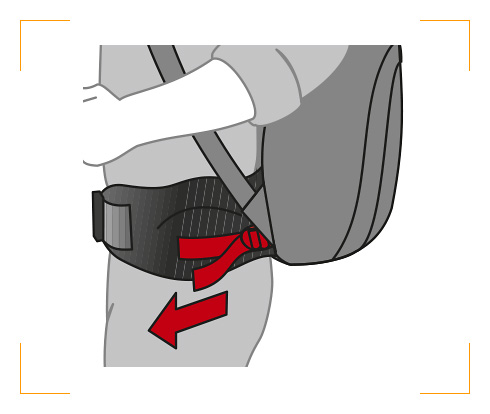 Vor den Schultergurten immer erst den Hüftgurt anpassen: Die Mitte des Hüftgurtes sollte in etwa mit dem Hüftknochen abschließen.