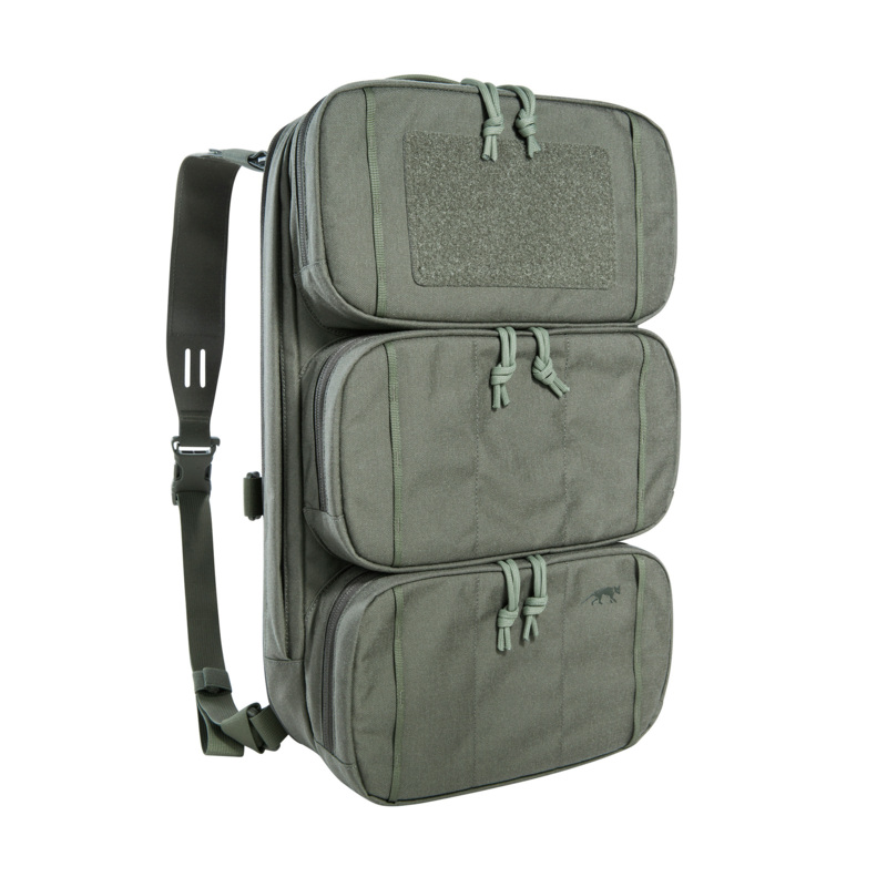Der TT Modular Chest Rig Pack ist als Rückenteil für das flache Gurtzeug TT Modular Chest Rig 4xM4 konzipiert. Er verfügt über ein schmales Hauptfach, drei Fronttaschen und ein Einschubfach für eine ballistische Platte. Er ist somit volumenvariabel durch einen umlaufenden Reißverschluss. Der Rucksack kann auch auf Plattenträgern montiert sowie allein verwendet werden.