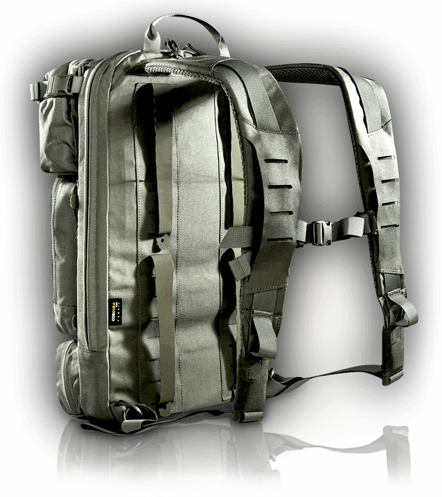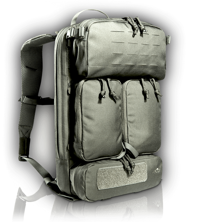Durch den modularen Aufbau und Molle auf der Außenseite kann der TT Modular Gunners Pack variabel aufgebaut werden. Die Besonderheit liegt insbesondere in den unterschiedlichen Bestückungsmöglichkeiten der Front. Der Rucksack besitzt zudem ein flaches Hauptfach mit Molle-Klett zur Anbringung von klettbasierten Pouches.