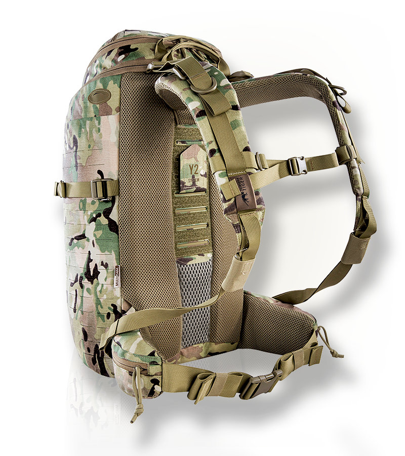 Das MOLLE-System in Lasercut-Ausführung auf der Front und an den Seiten des Rucksacks ermöglicht die Anbringung zusätzlicher Ausrüstung. Das Hauptfach ist innen mit MOLLE-Klettflächen zur individuellen Bestückung belegt.