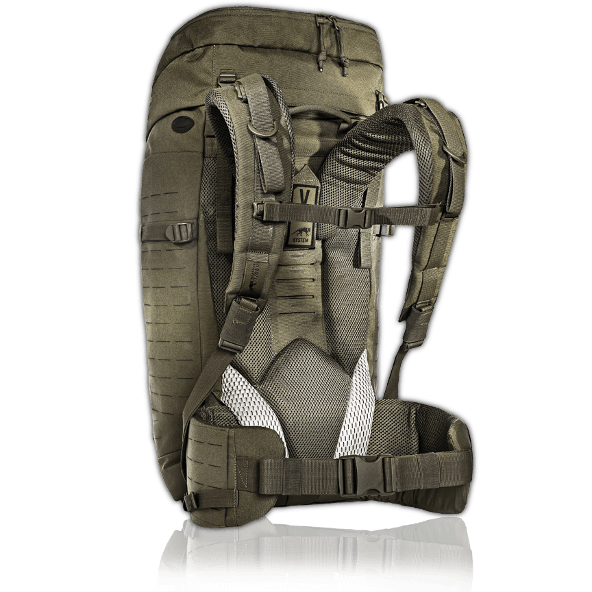 Durch den hohen Ansatzpunkt an der Rückenplatte bietet das V2 Plus-Tragesystem eine große Variationsbreite bei der Einstellung der Rückenlänge. Aufgrund des abnehmbaren Hüftgurts kann der Rucksack auch mit voll bestückten Westen und Chest Rigs getragen werden. Der Hüftgurt lässt sich zudem separat als Warrior Belt nutzen.