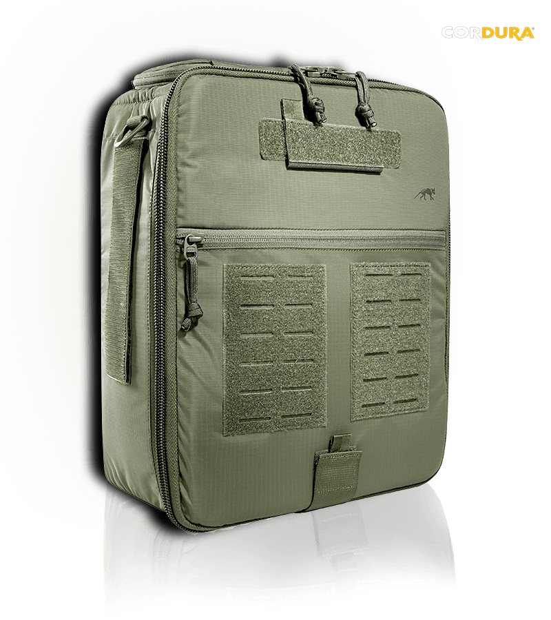 Mithilfe der am oberen Rand befindlichen Schlaufen kann das Insert mit TT SR 256 Safety QA-Schnallen an allen MOLLE-Panels oder am TT Modular Front Seat Panel (Art. 7548) befestigt werden.