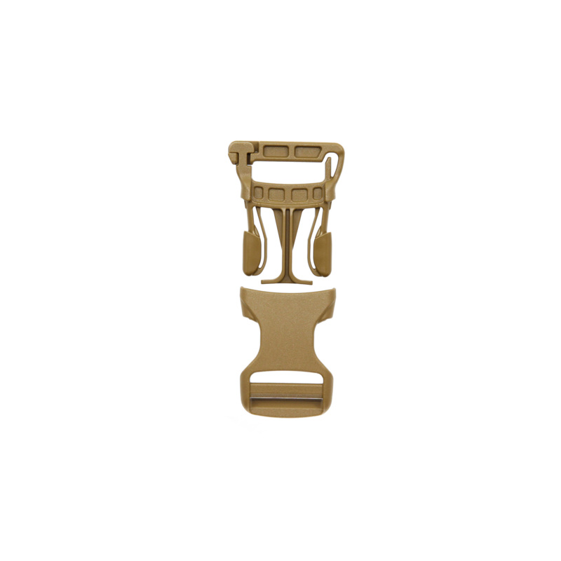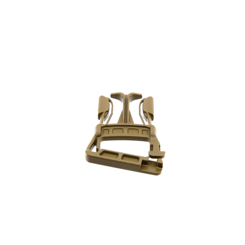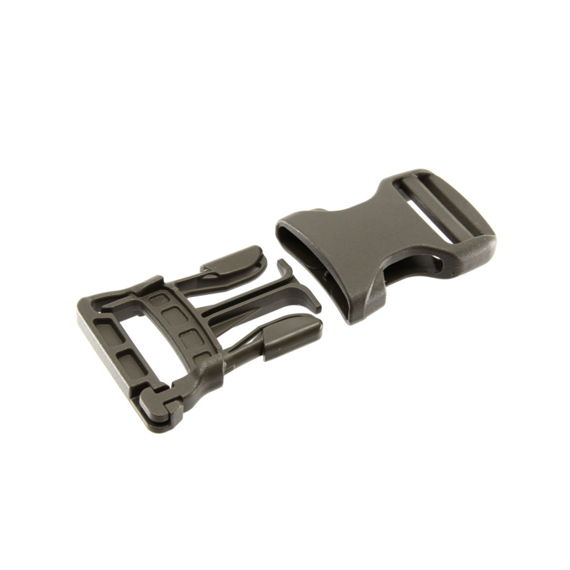 Multi-purpose buckle for vertical fastening in MOLLE systems and for attaching to sewn webbing loops. Suitable for 25 mm webbing width. Set of 2.