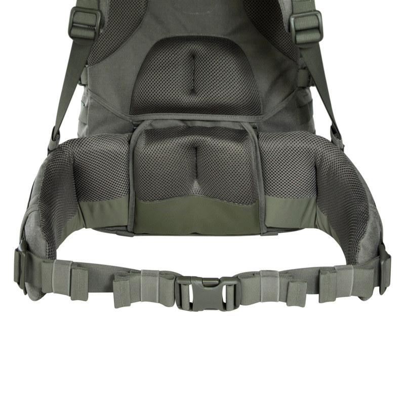 The TT Base Pack 52 offers a volume of 52 liters and is expandable to 65 liters. It has a high-performance V2 Plus carrying system and height-adjustable and removable lid. When used without the lid, the backpack is closed with the rolled snow guard. On the front and sides is MOLLE. The hip belt can be removed and used separately as a Warrior Belt.