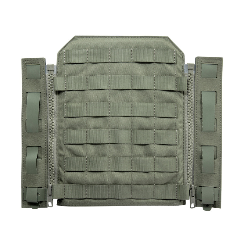 The TT Gear Pack ZP is designed for the TT Plate Carrier QR LC ZP and is attached via side zippers. Two tool tubes with MOLLE are attached to the reinforced base plate, the fold-out compartment for a bolt cutter is hooked onto the plate and has insertion options for Breachpens on the sides. The base plate can also be used separately or only with the tubes.