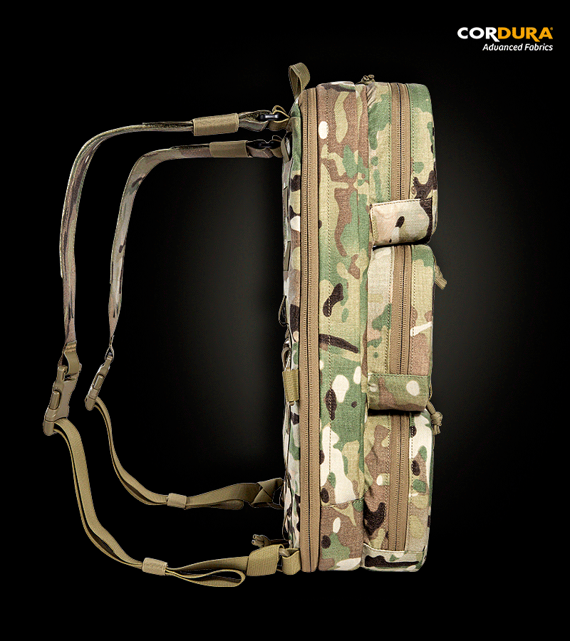 The TT Modular Chest Rig Pack was specially designed as a back panel for the TT Modular Chest Rig 4xM4; the shoulder straps with shoulder pads can be connected for a perfect fit.